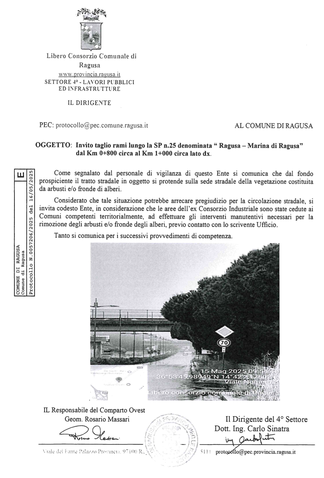 La relazione fa seguito alla suddetta richiesta proveniente dal Libero consorzio comunale di Ragusa